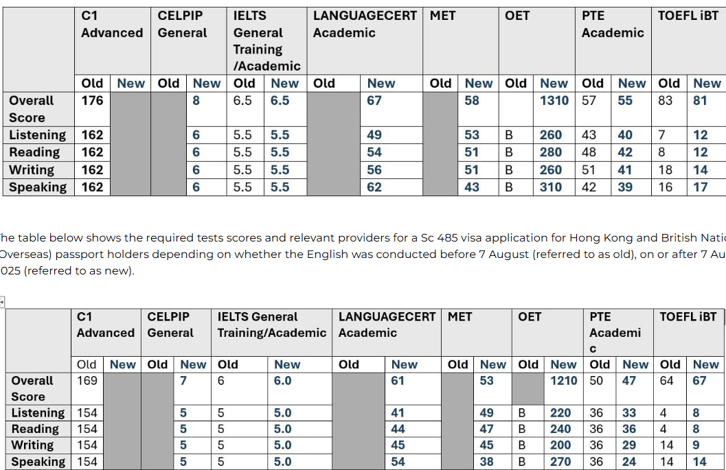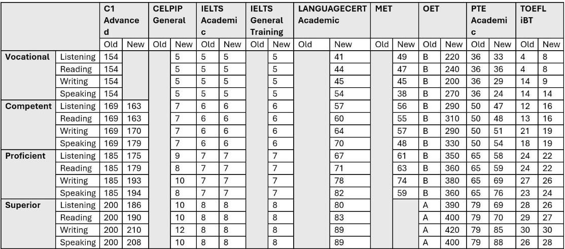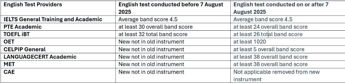 The Australian government requires visa applicants for most types of visa applications to meet a minimum English language standard, with additional points available for higher scoring tests.